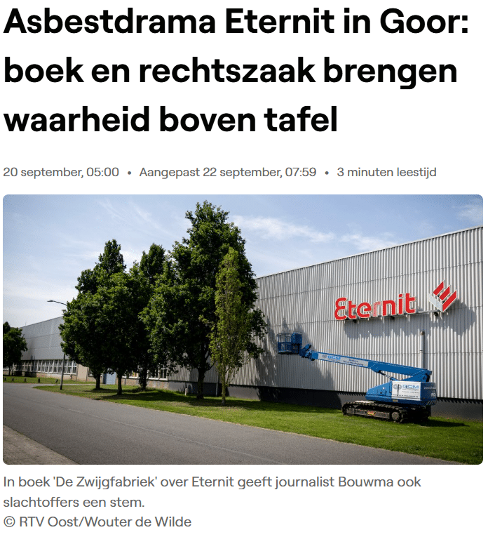 – Oost, 18 juni 2025: OM gaat asbestbedrijf Eternit strafrechtelijk vervolgen: “Het werd weggemoffeld”