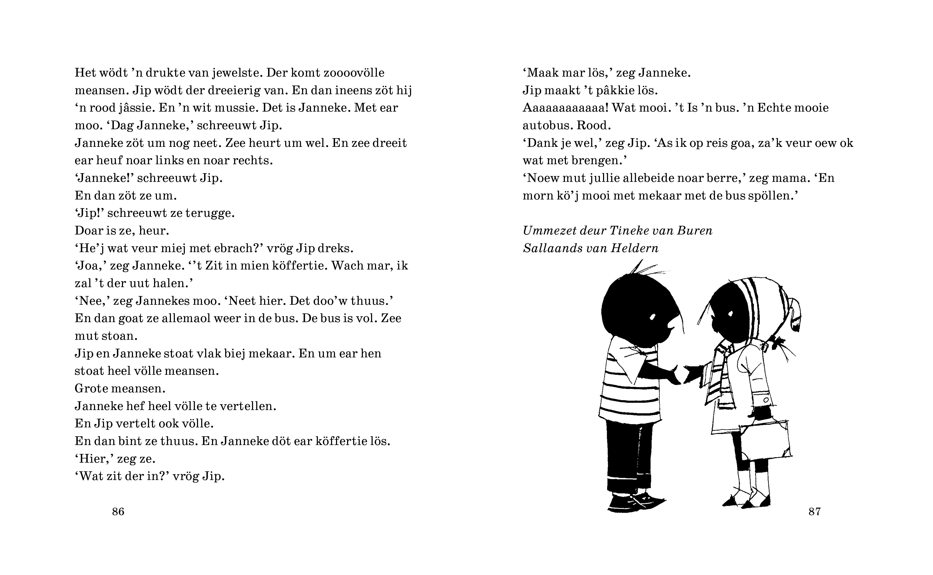 Jip en Janneke bint de beste möaties. Vanof hun eerste treffen bint ze altied biej mekaare. As Janneke ziek is, kump Jip dreks kieken, en als Jip zien etten niet op kan, red Janneke zich d’r met. As ze hellig bint, kump ‘t umslieks trechte, want beste möaties det bin iej veur altied!